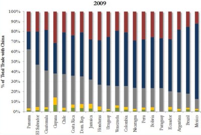 There is no meaningful intra-industry trade(a proxy for the extent of such spillovers effects)between LAC and China. A closer look at the composition of exports and imports between LAC and China (figure 1) show another hint of how this connection differs in nature from that of the Tigers and Japan.