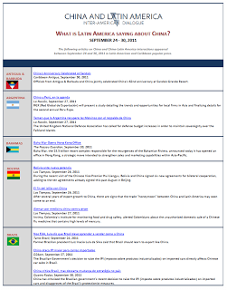 The following is a link to a list of Latin American news articles. Each article discusses China and/or China’s interactions in Latin America. News summaries of this sort will be posted to the China and Latin America blog on a weekly basis.