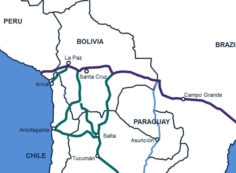 The Bolivia route is appealing to investors for a variety of reasons. It is not only shorter (around 3,755.5km, according to MOPSV’s study) but would require significantly less construction—much of the rail needed to cross Bolivia has already been built. Bolivian rail is relatively easily connected to Peruvian and Brazilian rail, moreover, according to analysis by COSIPLAN, UNASUR’s council for infrastructure planning. And plans to link Bolivia and Argentina are a plus for investors looking to access Argentina’s major agricultural producing regions.